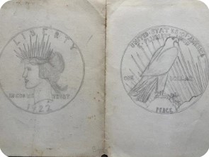 When I was in 5th grade my dad brought home a silver dollar. I remember lying on the shag carpet because I just had to draw the coin.