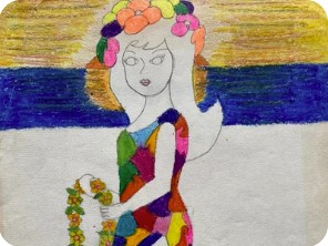 Oil pastels on velvet (rustled from dad’s college leftovers).