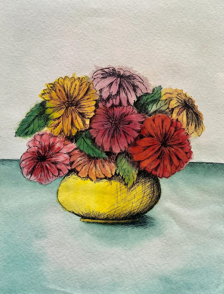 Art became more technical in college. I really loved ink, chalk, pointillism, and perspective.