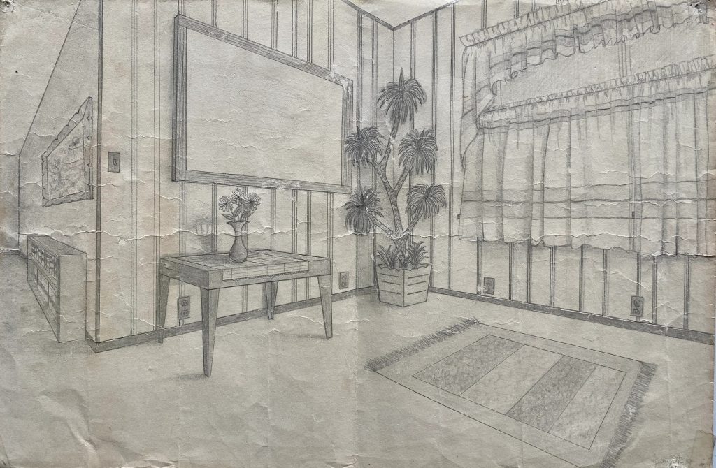 I painted this when I was in high school. I sawed the wood, built the frame, then stretched the canvas myself. There was no place for me to buy premade canvases so …once again I scavenged from my dad’s supply.